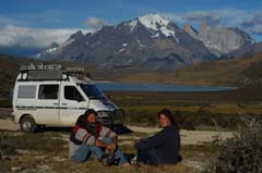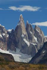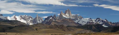 ![]() | ... und wieder einige hundert Kilometer Schotterpiste weiter nördlich sieht man schon aus der Ferne das Gebirgsmassiv des Fitz Roy mit seinen nadelartigen rund 1000 Meter hohen einzelnen Berggipfeln. Fast immer ist hier alles wolkenverhangen, aber wir hatten wieder einmal Glück mit dem Wetter. Schon am nächsten Tag war wieder alles mit tiefen grauen Wolken verhangen. | |||||||||||||||||||||||||||||||||||||||||||||||||||||||||||||||||||||||||||||||||||||||||||