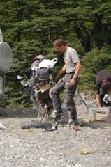 | Das "wild" kann man gleich 2x wörtlich für diese Straße nehmen. Denn was bis jetzt auf den anderen Pisten noch nicht zerschüttelt wurde, hat hier eine Chance, seinen Geist aufzugeben. Auch bei uns kündigte ein weiteres Federblatt seinen Dienst auf dieser Strecke. Aber nicht mehr lange, denn die Chilenen bauen schon an einer Asphaltstrecke, dann ist das Fahrabenteuer vorbei. Zum anderen geht die Carratera Austral durch eine bilderbuchartige wilde Landschaft. | ||||||||||||||||||||||||||||||||||||||||||||||||||||||||||||||||||||||||||||||||||||||||||||
